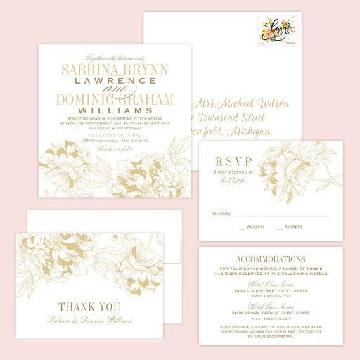 Elegant Champagne Gold Floral Peony WeddingDesigned by Kat Fusinski