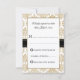 © Socialite Designs. Our elegant event response card has a beautiful gold damask background on white and flourish design on black. Pair this elegant RSVP card with the matching invitation.