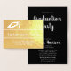 Graduation cap and the words 'Graduation Party' are on the front of this gold foil card. Inside the background is black, you can personalize your message with the details of your graduation party.