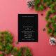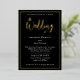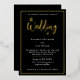 These elegant and modern wedding invitations feature a beautiful real gold foil design over a black background. The wedding details are printed in a sophisticated font and accented with a gold border. "The wedding of" is printed in a beautiful script font.