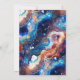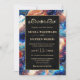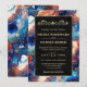 Create a bold and mesmerizing statement with this elegant wedding design featuring a vibrant blue celestial agate-inspired background accented with shimmering gold details. Swirling marble textures blend deep navy, bright teal, warm amber, and soft ivory tones, evoking a cosmic, galaxy-like aesthetic. The refined gold frame and delicate ornamental flourish add timeless sophistication, while scattered gold flecks enhance the luxurious, starry effect.