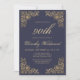 Elegant Gold Frame Dark Navy Blue Birthday Party Invitation