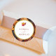 Add a touch of timeless elegance to your wedding with our exquisite round stickers. These charming stickers feature a rustic backdrop of autumn leaves, adorned with a shorter, white panel framed by a shimmering gold border and surrounded by autumn foliage. The couple's names are elegantly displayed within the frame, creating a personalized and memorable keepsake.