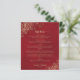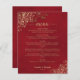 These beautiful wedding menus are simple, elegant, and stylish while still being budget friendly and affordable. They feature a classy and glamorous design with golden faux foil curls and swirls, and script calligraphy on a marbled crimson red background.