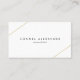 Modern geometric business card with two gold lines, one across the top left and one across the bottom right over a white background. In the middle are your name and title. The back has your contact information. A minimalist design that still comes across as chic and stylish. This design is great for many professions including a consultant, interior designer, event planner and more.