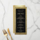 Impress your wedding guests with this luxurious black and gold wedding menu card. Designed with an elegant black background framed by faux gold glitter, this tall menu layout showcases a full course meal in refined, modern serif typography. Perfect for black-tie weddings, New Year’s Eve celebrations, or glamorous formal receptions.