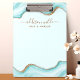 Elegant Gold Glitter Blue Marble Agate Modern Clipboard
