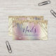 This gorgeous nail technician business card design features faux gold dripping glitter metallic texture, frame and elegant calligraphy font.