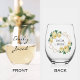 Elegant Gold Glitter Geo Yellow Floral Wedding Stemless Wine Glass