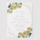 Elegant Gold Glitter Geometric Yellow Wedding Vellum Invitations. Design features an elegant faux gold glitter geometric frame pattern. Overlaid with watercolor blue roses and greenery foliage on two corners. Personalize this template to add your information on the front and back of the card. Click to customize further to make more changes. Everything is customizable.