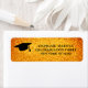 This elegant Graduation return address label is decorated with a grad cap on a gold glitter background.