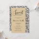 Plain white envelopes are included with paper invitations and will come to fit the invitation size you select. If you don’t need the envelopes, you may choose to not receive them by selecting the dropdown below "Envelopes" and choosing "None." If you’d like to have a design on your envelopes, you can browse all of these available envelopes to find the design that complements your Elegant Gold Glitter Leopard Pattern Invitation.