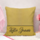 Add a touch of personalized luxury to your home decor with this chic custom name throw pillow. Featuring a sophisticated dual-tone design, the top half showcases a shimmering gold glitter texture, perfectly balanced by a solid gold-tone base. A clean black divider line separates the two sections, highlighting the elegant black cursive script used for the personalization.