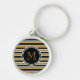 Elegant Gold Glitter Stripes Monogram Keychain