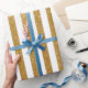 Elegant faux gold glittery striped wrapping paper. Shiny golden texture stripes. Modern glitter stripes design gift wrap for classy wedding, chic birthday, fancy christmas, bridal shower etc. Trendy Birthday and holiday giftwrap print with stylish big thick lines. Customizable background color. Customizable to horizontal or diagonal. Sparkly glamorous wrappingpaper design. Also great for trendy wedding party favors. Luxury style.