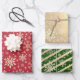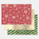 Elegant Gold Green Red Christmas Snowflake Pattern Wrapping Paper Sheets