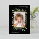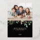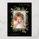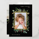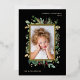 Elegant Gold Greenery | Black with Two Photos Foil Holiday Card