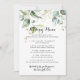 This elegant gold greenery wedding kissing menu game card is perfect for a simple wedding reception. The design features hand-drawn gold and botanical green eucalyptus leaves, inspiring artistic beauty.