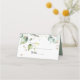 This elegant gold greenery wedding place card is perfect for a simple wedding. The design features hand-drawn gold and botanical green eucalyptus leaves, inspiring artistic beauty.