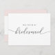 Custom-designed "Will You Be My Bridesmaid" bridal party proposal card featuring elegant hand calligraphy on the front, pink color block with gold heart design on the back.