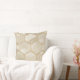 A seamless geometric pattern throw pillow featuring a refined grid of hexagonal shapes outlined in metallic gold. Each hexagon contains intricate designs such as parallel lines, cross-hatching, and abstract geometric motifs. The background blends soft cream and beige tones with a subtle marble-like texture, creating a sophisticated, luxurious aesthetic.