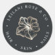 Label your business correspondence or products with these chic stickers that match our Hibiscus Flower logo branding suite for hairstylists, salons, boutiques or any beach-based or island business. Rich soft black stickers feature a faux gold foil hibiscus flower illustration in the center, with two text fields curving around the outside, in classic white lettering.