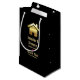 Gift bag with a simple image of a gold gradient house on a black background. Elegant minimalist design.