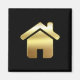 A magnet with a simple image of a gold gradient house on a black background. Elegant minimalist design.