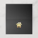 Folded place cards with a simple image of a gold gradient house on a black background. Elegant minimalist design.