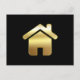 A postcard with a simple image of a gold gradient house on a black background. Elegant minimalist design.