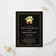 A graduation invitation postcard with a simple image of a gold gradient house on a black background. A faux gold foil frame surrounds the design. Elegant and minimalist.