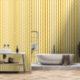This elegant gold and ivory striped wallpaper adds distiction to any room. Perfect for an accent wall.