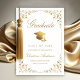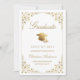 Elegant Gold Ivy Grad Cap White Graduation Announcement