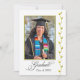 Announce a graduation in minimalist, yet elegant, style. The gold ivy image provides an elegant touch for your photo and graduation information. The photo on the front is also surrounded by a narrow, gold-beveled frame. Graduation information goes on the back. All text can be edited by using the template. The "Graduate" text on the front is a graphic image rather than type. If additional changes are wanted (different type fonts, color, size or position OR to resize or rearrange the "Graduate" image on the front), select "Personalize this design" then select "Edit using Design Tool." Comes complete with envelopes. Although listed as an announcement for a High School graduation, the text can easily be adapted for other institutions.