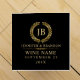 Gold tones laurel wreath with a customizable monogram. Black changeable background and customizable text template.
