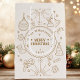 Celebrate the season with timeless charm. Featuring hand-drawn gold line illustrations of classic Christmas elements — ornaments, stars, holly, and bows — all framing your family name and festive greeting. A refined neutral-toned layout that blends vintage elegance with minimalist warmth.