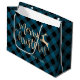 Elegant Gold Merry Christmas Black & Blue Plaid Large Gift Bag