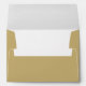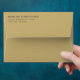This wedding envelope features a minimalist design with centered text on a plain, elegant gold background. The layout is clean and modern, emphasizing simplicity and sophistication through ample negative space and a focus on legibility. The typography is sans-serif, offering a contemporary feel that complements the formal tone of the design. Perfect for couples seeking an understated yet stylish way to send their wedding invitations, this envelope conveys elegance and clarity in every detail.