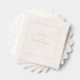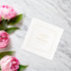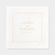 These wedding napkins feature a minimalist and elegant design with a simple rectangular gold frame on a white background. The layout includes three lines of text in a classic serif font, creating a sophisticated and timeless look. The color palette consists of soft whites and subtle golds, adding a touch of luxury to the understated style. Perfect for formal occasions, these napkins convey a mood of celebration and anticipation, making them an ideal choice for weddings or other special events.