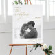 This elegant gold wedding welcome sign features your photo and a modern, romantic gold calligraphy script. You'll welcome your guests to your wedding and reception in soft modern style.