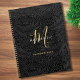 Elegant vintage black floral botanical pattern planner with a custom monogram in gold classic serif typography and name in white modern san serif typography.
