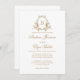 Plain white envelopes are included with paper invitations and will come to fit the invitation size you select. If you don’t need the envelopes, you may choose to not receive them by selecting the dropdown below "Envelopes" and choosing "None." If you’d like to have a design on your envelopes, you can browse all of these available envelopes to find the design that complements your Elegant Gold Monogram Crest Wedding Invitation.