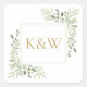 Elegant Gold Monogram Greenery Foliage Wedding Square Sticker