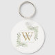 Elegant watercolor greenery eucalptus leaves monogram name keychain featuring a gold monogram initial. Designed by Thisisnotme©