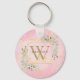 Elegant Gold Monogram Greenery Pink Agate Geode Keychain