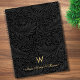 Elegant Gold Monogram Name Black Floral Pattern Notebook