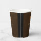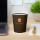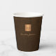 Luxury monogrammed paper cups with a dark brown leather look background and a faux gold copper metallic brushed square with elegant script signature name and monogram initials. ++++++++++++++ Easy to personalize creating your own logo with your business or personal initials and name. +++++++++++++ Could be an elegant personalized business corporate disposable drinkware for a networking event or for office guests or a modern branding essential for your office bar.