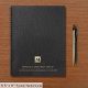 Enhance your professional presence with our Black Leather Luxury Gold Initial Subject Spiral Notebook. Showcasing a brushed gold monogram initial accompanied by your company name and information in timeless golden typography, all set against a sophisticated black leather print backdrop. This notebook seamlessly combines style and functionality, making it an ideal choice for consultants and consulting firms. Capture your thoughts, ideas, and plans with elegance while reflecting your commitment to excellence. Elevate your note-taking experience with this refined notebook, an essential tool that fuses sophistication with practicality.