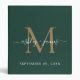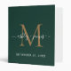 Elegant Gold Monogram Script Dark Green Wedding 3 Ring Binder