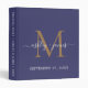 Elegant Gold Monogram Script Navy Blue Wedding 3 Ring Binder